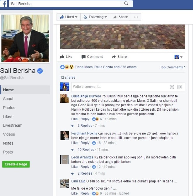 Në pak ditë, faqja në Facebook e ish kryeministrit Sali Berisha ka marrë ndoshta dozën më të madhe të komenteve negative.