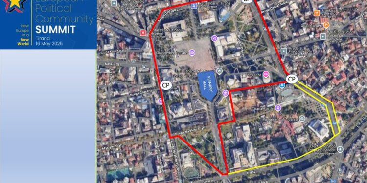Do të ketë kufizime të qarkullimit në zonat përreth vendeve ku zhvillohen aktivitetet e samitit. Më datat 15.05.2025-16.05.2025, do të ketë kufizim të përkohshëm të lëvizjeve të automjeteve në akset rrugore:
