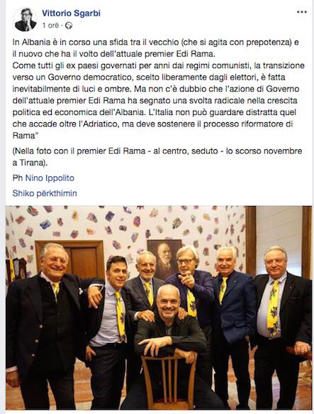 Politikani dhe personazhi i njohur italian, Vittorio Sgarbi, ka komentuar situatën politike në Shqipëri. Ai thotë se në Tiranë është duke u zhvilluar një luftë mes së vjetrës dhe së resë, përfaqësuar nga Edi Rama, dhe këshillon autoritetet italiane, që të marrin krahun e këtij të fundit, në krizën politike që ka mbërthyer Shqipërinë.