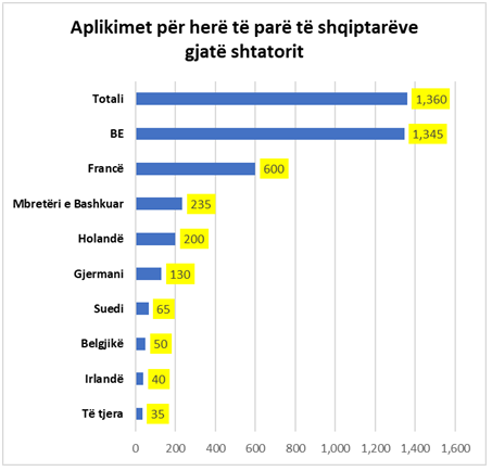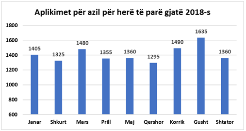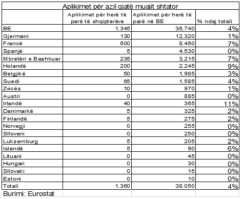 Në total për 9 muajt e parë të këtij viti kanë aplikuar për azil rreth 12,705 shtetas shqiptarë në vendet anëtarë të Bashkimit Europian.