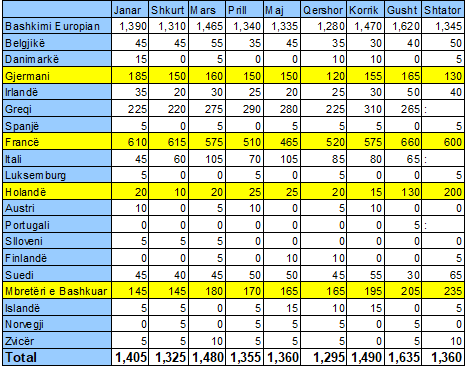 Në total në të gjitha vendet anëtare të Bashkimit Europian aplikuan për herë të parë rreth 38 mijë aplikantë. Numrin më të lartë të aplikimeve vijon ta ketë Gjermania, ku vetëm gjatë shtatorit aplikuan 12,320 azilkërkues. Në vend të dytë renditet Franca me 8,460 azilkërkues dhe Spanja me 4530 azilkërkues të rinj. Gjatë 9 muajve të parë të vitit, Bashkimi Europian numëron 431 mijë 570 aplikime të reja.