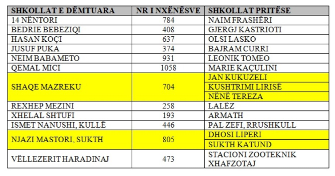 Në Bashkinë Durrës, janë dëmtuar 12 institucione arsimore, dhe 7071 nxënës të këtyre shkollave janë transferuar në 15 shkolla të tjera pritëse për zhvillimin e procesit mësimor, si në vijim: