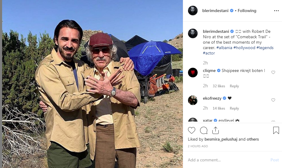 “Me Robert De Niron-n në setin e flimit ‘Comeback Trail’. Një nga momentet më të mira të gjithë karrierës sime”, ka shkruar Blerim bashkangjitur fotos më të fundit.
