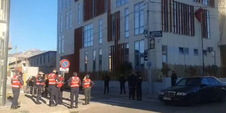 Policia e Elbasanit, ekipet Shqiponja dhe FNSH kanë marrë nën kontroll godinën e gjykatës, ku do të jepet masa e sigurisë për Mjacajn, i cili ka hapur zjarr në drejtim të të dënuarit Arben Lleshi dhe Indrit Shaqja. Për pasojë, i vdekur në vend mbeti Lleshi dhe i plagosur Shaqja.