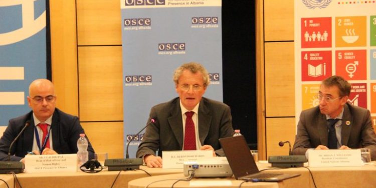 Kështu u shpreh kryetari i Prezencës së OSBE-së në Shqipëri, ambasadori Bernd Borchardt gjatë fjalës së mbajtur sot në hapje të një trajnimi treditor për monitorimin dhe raportimin e të drejtave të njeriut, ku ishte i pranishëm edhe Koordinatori Rezident i Kombeve të Bashkuara, Brian J. Williams.