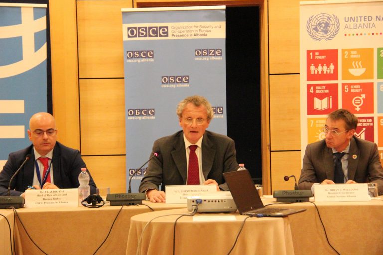 Kështu u shpreh kryetari i Prezencës së OSBE-së në Shqipëri, ambasadori Bernd Borchardt gjatë fjalës së mbajtur sot në hapje të një trajnimi treditor për monitorimin dhe raportimin e të drejtave të njeriut, ku ishte i pranishëm edhe Koordinatori Rezident i Kombeve të Bashkuara, Brian J. Williams.