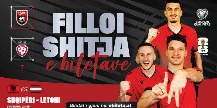 Federata e Futbollit njofton të gjithë tifozët se nga kjo e mërkurë nis shitja e biletave për ndeshjen Shqipëri – Letoni, e vlefshme për kualifikueset e Kampionatit Botëror 2026.