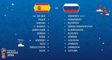 Luhet në Luzhniki të Moskës, sfida e 1/8-ave mes Spanjës dhe Rusisë. Iberikët sfidojnë të zotët e shtëpisë, në një ndeshje ku shihen si favoritë për të kaluar më tej. Nga ana tjetër, përballë publikut të vet, Rusia nuk ka asgjë për të humbur, dhe do të tentojë mrekullinë përballë Spanjës. Iniesta do ta nisë nga stoli këtë takim për Spanjën, ndërkohë edhe ylli i Rusisë, Denis Çerishev, nuk është titullar.