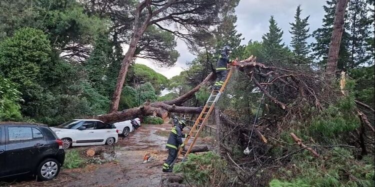Për shkak të rënies së një peme mbi shina, një tren i bllokuar në linjën Rimini-Ravenna u evakuua dhe pasagjerët u shpëtuan.