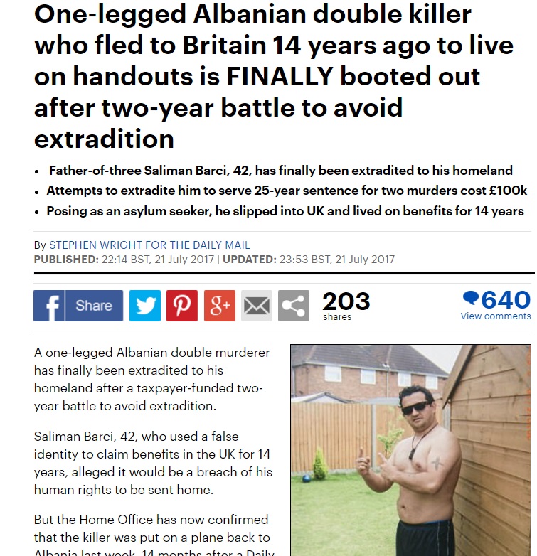 Humb betejën me drejtësinë britanike dhe ekstradohet ne Shqiperi shqiptari i etiketuar si vrasësi me një këmbe, Saliman Barçi.