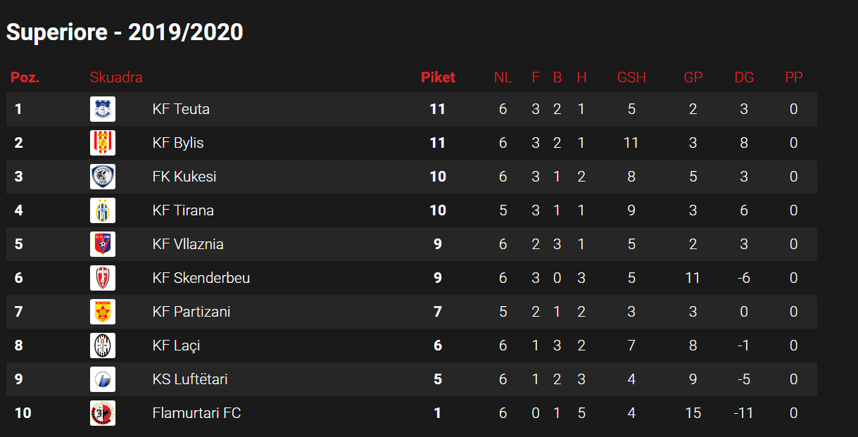 Teuta dhe Bylisi janë skuadrat që dalin në krye të kategorisë Superiore në pritje të asaj që do të bëjë Tirana në derbin e kryeqytetit me Partizanin që do të luhet të dielën.