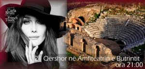 Kantautorja dhe modelja e njohur, bashkëshortja e ish-Presidentit francez Nicolas Sarkozy, Carla Bruni, do të këndojë në Butrint. Ajo do të jetë e ftuar më 21 qershor, datë që përkon me ditën e ‘Festës së Muzikës’. Ajo do t’i prezantohet publikut me 11 këngë nga albumi i saj më i ri.