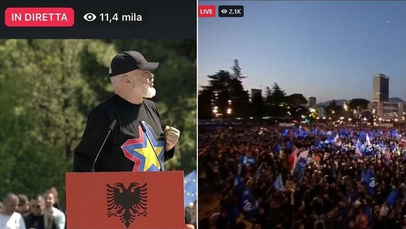 Ndërsa në shesh ishin të paktën 15 mijë qytetarë në mbështetje të kryesocialistit Edi Rama dhe vizionit të tij për Shqipërinë 2030, me mijëra ishin dhe ata që e ndoqën takimin drejtpërdrejt në rrjetet sociale.