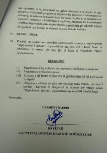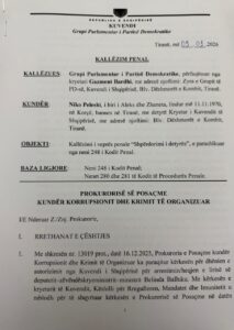 Grupi Parlamentar i Partisë Demokratike ka depozituar kallëzim penal për kryerjen e veprës penale “Shpërdorim i detyrës”, ndaj Kryetari të Kuvendit Niko Peleshi.