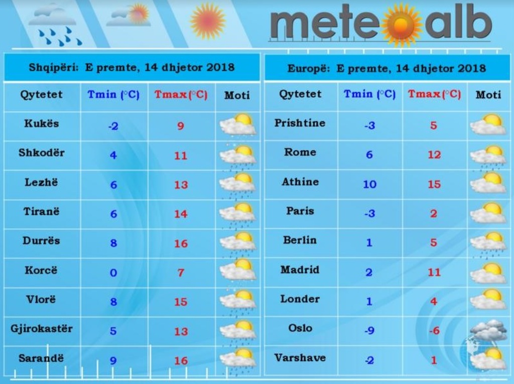 Ndërsa mesdita sjell rritje te tyre duke luhatur vlerat ditore nga -3°C në 16 °C.