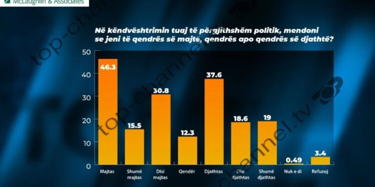 Në krahasim me sondazhin e bërë në shkurt, ideologjia e majtë, shumë majtas, djathtas, disi djathtas dhe shumë djathtas kanë pësuar rënie, ndërsa rritje kanë pasur disi majtas dhe qendra.