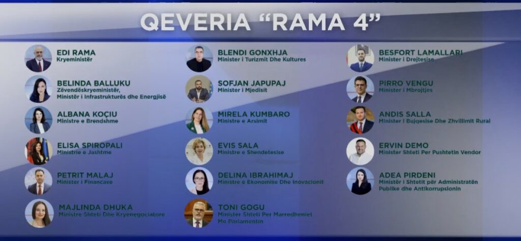 Kryeministri Edi Rama prezantoi sot më 11 shtator 2025 përbërjen e re të qeverisë për mandatin e katërt, ku bie në sy një kombinim mes figurave të reja dhe atyre të konfirmuar.