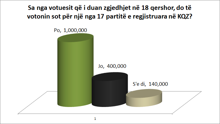 Në fakt, një pyetje e bërë në anketim e zbulonte qartë indiferencën e këtij grupit të fundit. Në qoftë se zgjedhjet do të ishin zhvilluar të shtunën, ekstrapolimi i të dhënave tregonte se mbi 1 milion zgjedhës do të kishin votuar për një nga partitë e regjistruara në KQZ, ndërkohë që pothuaj 1.6 milionë duan që zgjedhjet të zhvillohen në 18 qershor, pavarsisht se disa prej këtyre votuesve s’kanë ndërmend të marrin fare pjesë në to.