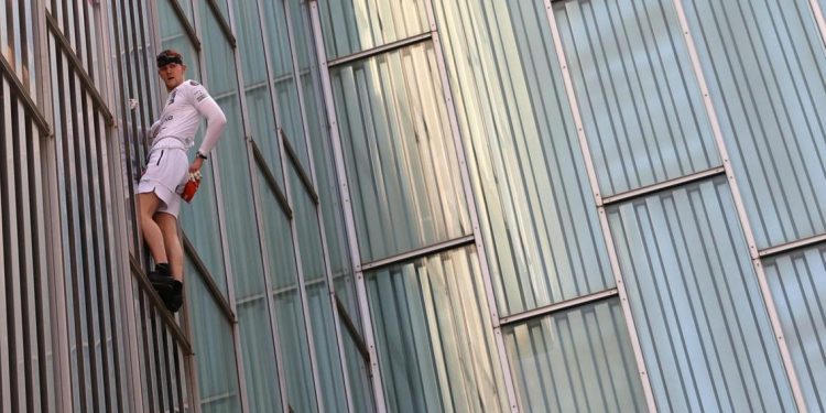 Turma njerëzish u mblodhën për të parë 21-vjeçarin britanik, teksa ngjiti godinën 377.7 metra të lartë të hotel “Melia Barcelona” në Spanjë.