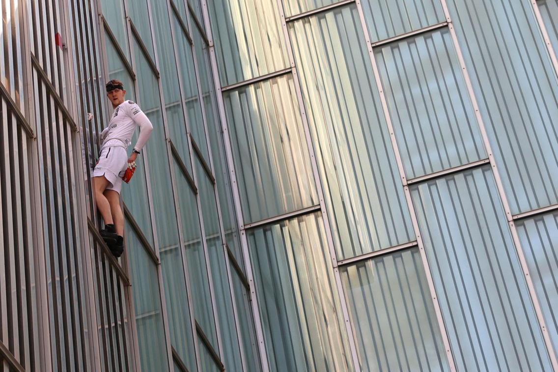 Turma njerëzish u mblodhën për të parë 21-vjeçarin britanik, teksa ngjiti godinën 377.7 metra të lartë të hotel “Melia Barcelona” në Spanjë.