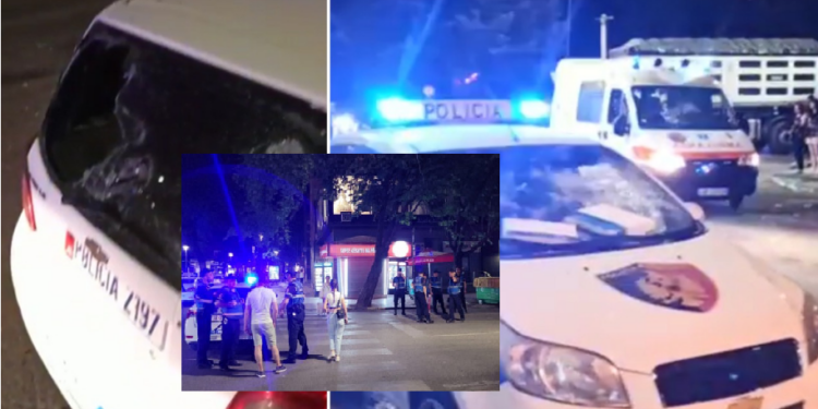 Pre e sulmeve të tifozëve kanë rënë edhe uniformat blu, ndërkohë që te Drejtoria e Policisë së Tiranës një makinë e patrullës është sulmuar me objekte të forta.