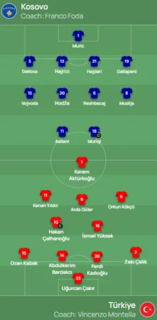 Trajneri Franco Foda i ka besuar 11-shes që hodhi në fushë përballë Sllovakisë, me Muriç në portë, Dellova, Hajrizi dhe Hajdari në mbrojtje, Vojvoda dhe Gallapeni do të luajnë më të avancuar nga krahët, ndërsa në mesfushë janë Hoxha, Rexhbeçaj dhe Muslija. Sulmi do të përbëhet nga dyshja Muriqi-Asllani.