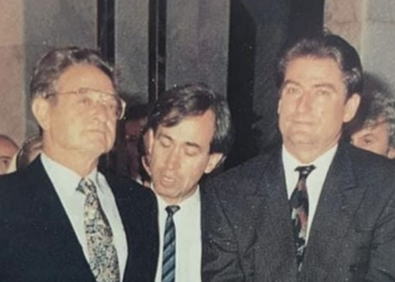 Dhe më në fund, Berisha dhe Soros u takuan. Kjo foto është e para mes tyre. Besohet t’i përkasë periudhës 1997-1998, kur doktori ishte President ose sapo kishte dalë në opozitë.