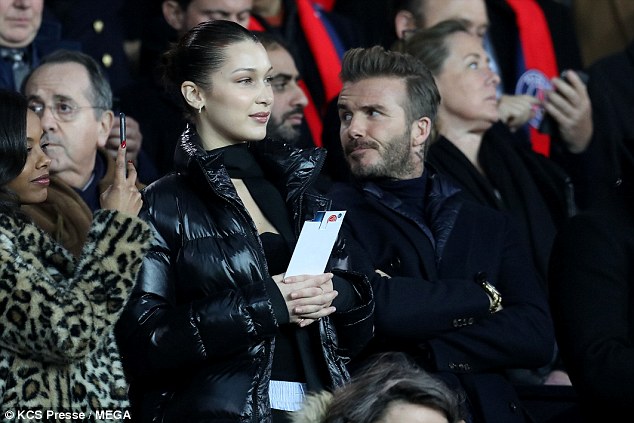 David Beckham u duk mjaft i entuziasmuar pasi u takuame supermodelën Bella Hadid gjatë ndeshjes Paris Saint-Germain dhe Real Madridit, shkruan javanews