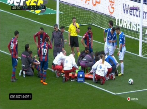 Skuadra e Levantes ndodhet në një situatë kritike për pikët dhe fitorja në këtë sfidë ishte një detyrim. Në minutën e 44-t, sulmuesi i Kombëtares, Armando Sadiku, u përplas kokë më kokë me portierin e Espanjolit, Diego Lopez. Ish-portieri i Milanit, doli nga fusha me barrelë dhe u transportua drejt e në spital.