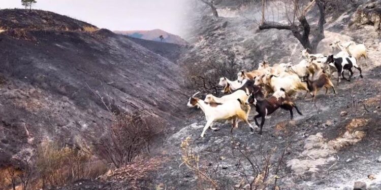 E vetmja gjë e gjallë mes pyjeve të zeza duket se janë bagëtitë, të cilat kanë mbetur pa kullota.