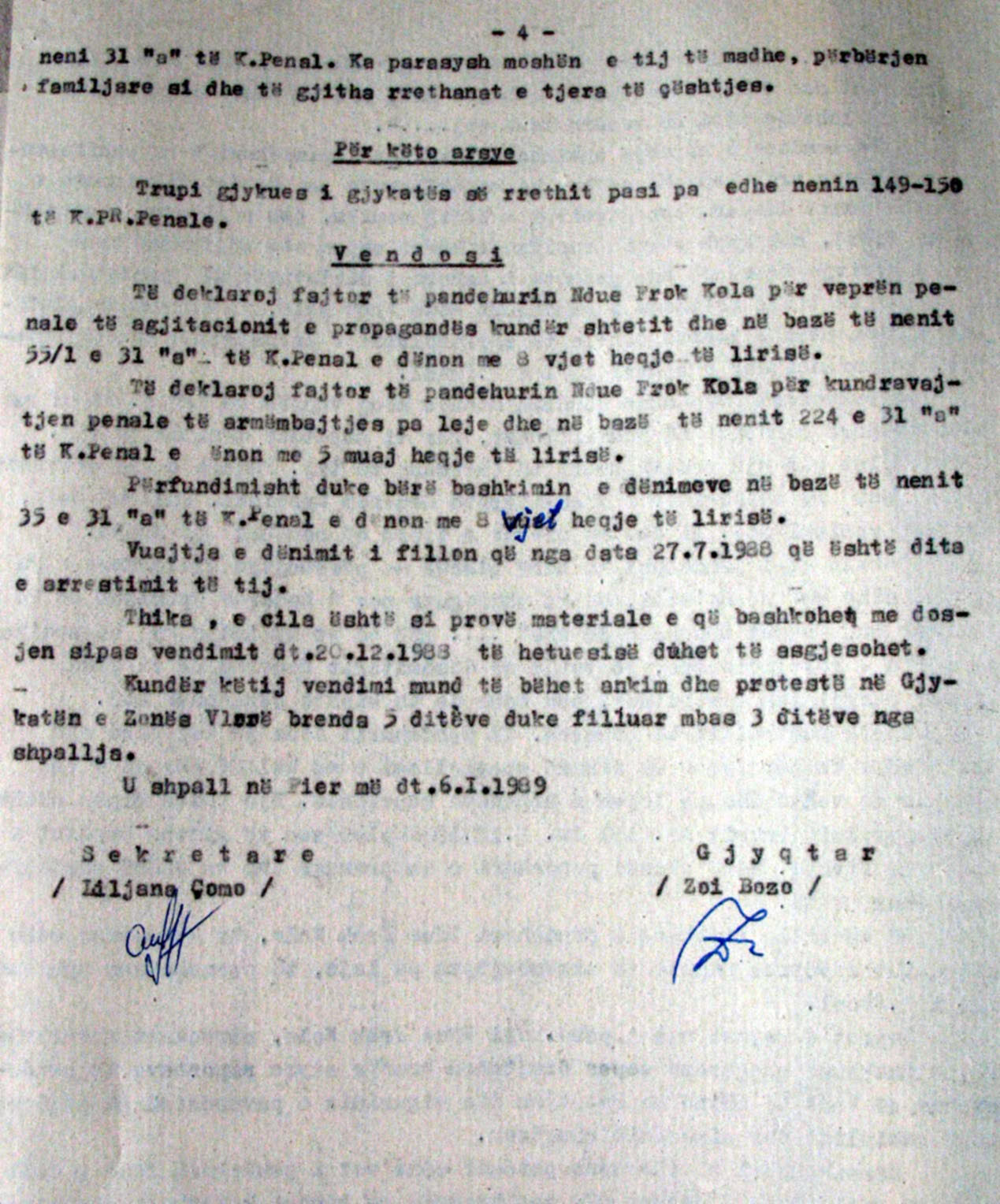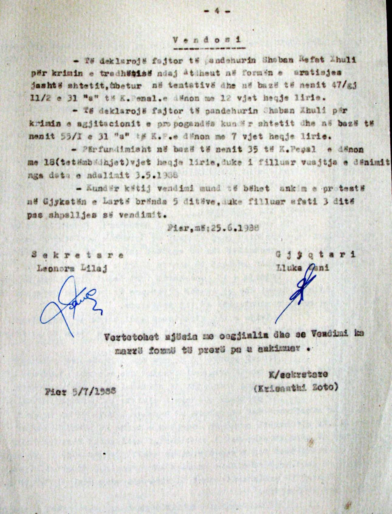 “Në këto vendime konstatohet se dënimet dhe akuzat ndaj qytetarëve shqiptarë, nga anëtarët e sotëm të KLGJ dhe KLP, janë dhënë për motive qartazi politike dhe me akuzë për tradhëti ndaj vijës së partisë dhe vlerave të partisë”, thotë Partia Demokratike.