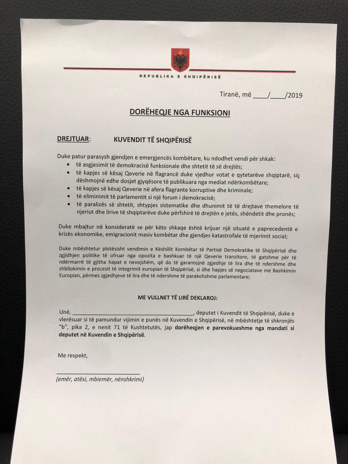 Ata kanë nënshkruar një deklaratë drejtuar Kuvendit të Shqipërisë duke dhënë dorëheqjen e parevokueshme