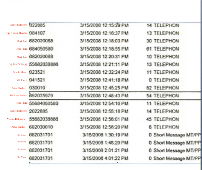 Më pas derisa e arrestojnë në orën 16 ai flet përsëri me gruan, me avokatin dhe Ilir Metën me të cilin ka shkëmbyer 4 mesazhe.
