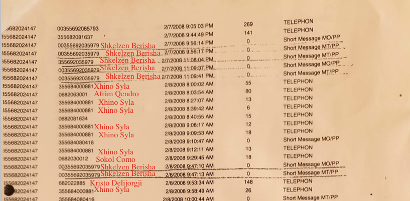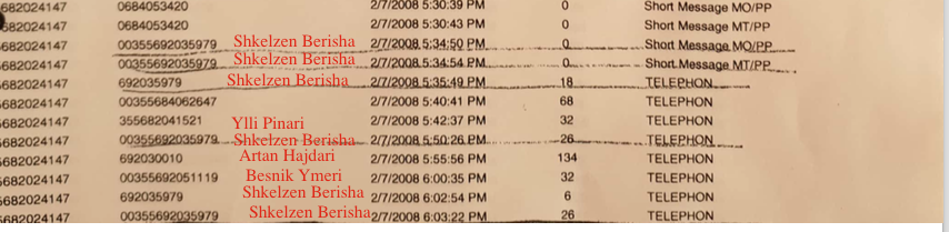 Mjaftojnë këto tabulate për të kuptuar se Shkëlzen Berisha ishte njeriu kyç pa të cilin ai nuk e zhvillonte dot këtë biznes. Ai i telefonon atij me një dinamik të shtuar thuajse në dy tre ditë, duke folur disa herë dhe duke u pasuar nga telefonata që i drejtohen të njëjtit grup njerëzish.