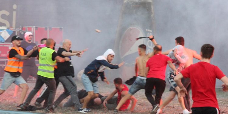 Një dhunë e madhe shpërtheu në stadiumin “Selman Stërmasi” në zonën pas portës në prag të ndeshjes së fituar nga Partizani me shifrat, 2-1.