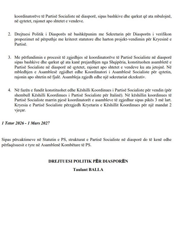 Sipas një projekt-vendimi të socialistëve, do të krijohet një regjistër të anëtarësisë dhe të përkrahësve nga diaspora shqiptare, duke nisur me vendet kryesore ku jetojnë gati 90% e shqiptarëve.