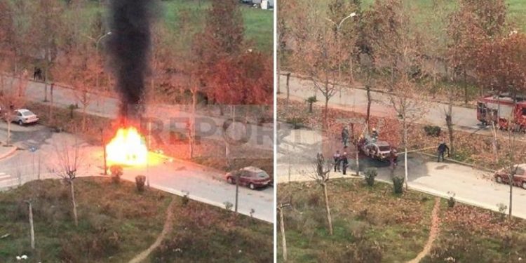 Një makinë është përfshirë nga flakët në zonën e njohur si ish-fusha e aviacionit në Tiranë mëngjesin e sotëm,