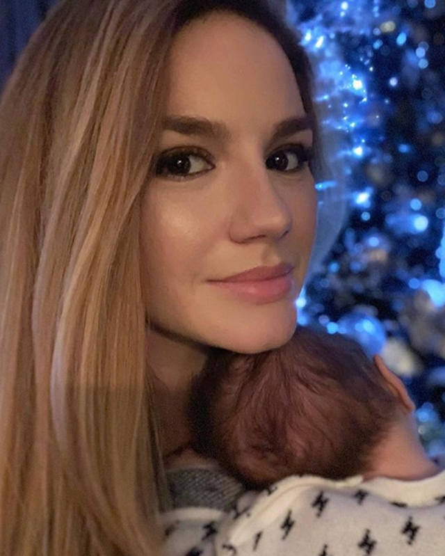 Së bashku me djalin ajo shfaqet pranë pemës së Vitit të Ri dhe Kajan ka mbështetur kokën tek shpatulla e së nënës së tij.