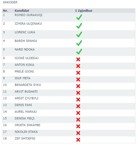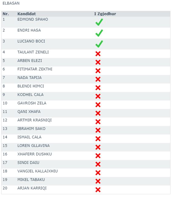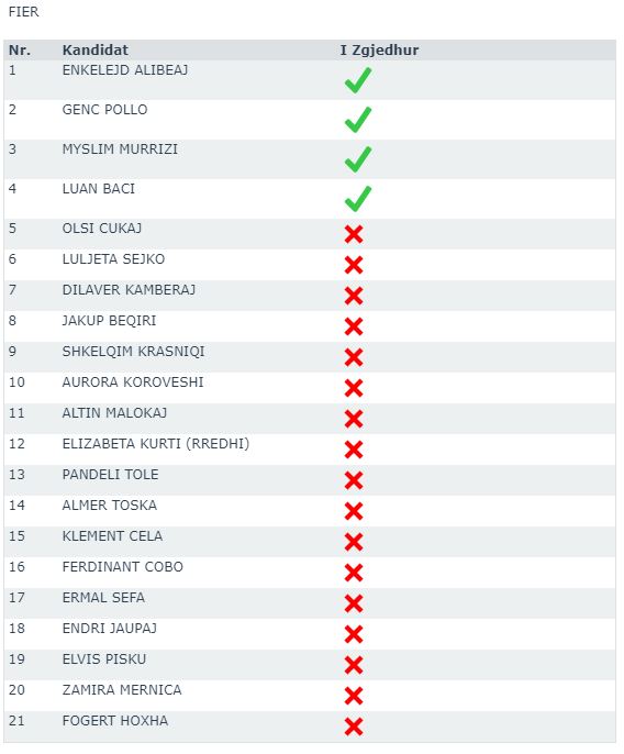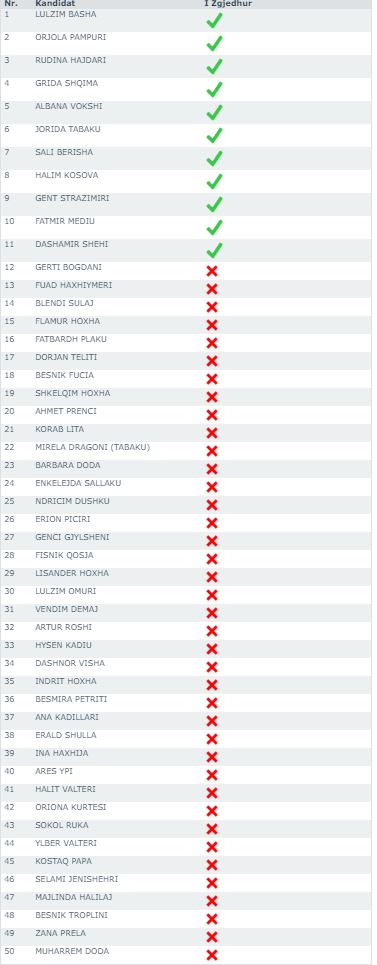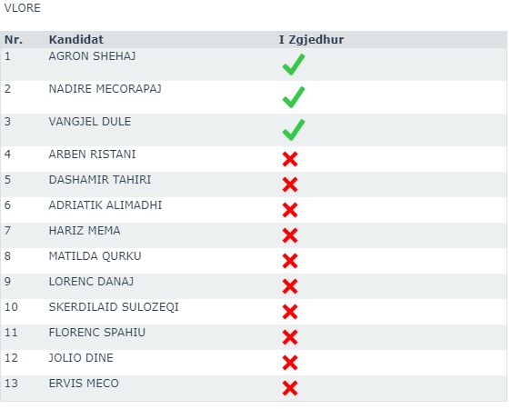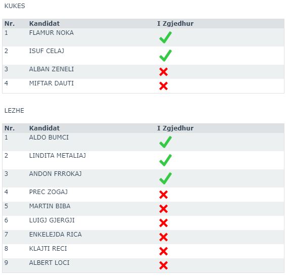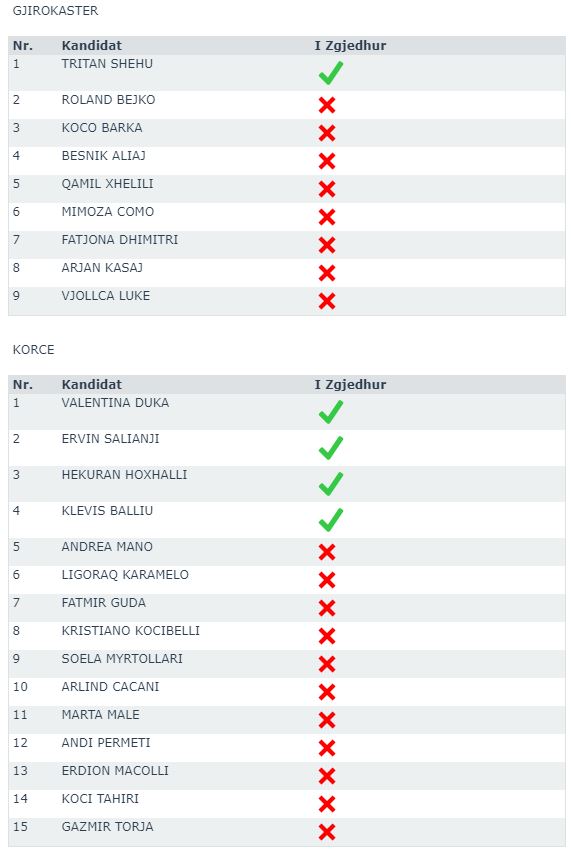 JavaNews sell më poshtë emrat fitues (me shenjë jeshile në krah) dhe ata që do t’u bëhet ftesa për t’i zëvendësuar, në rast të djegies së mandateve.