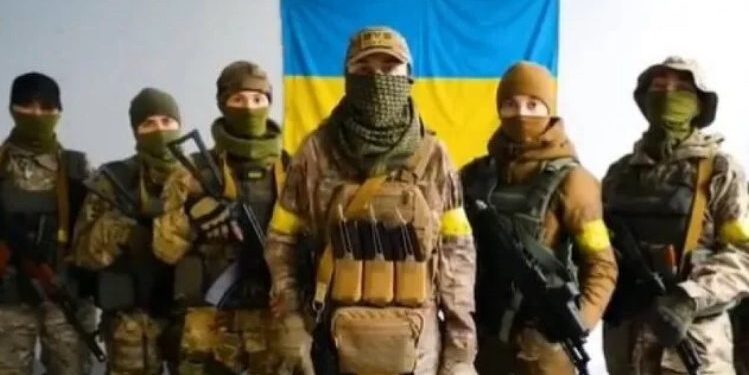 Autoritetet ukrainase kanë shpërndarë një video të një grupi grash të veshura me veshje ushtarake dhe duke mbajtur armë.