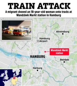 Një vajzë 18-vjeçare humbi jetën pasi u shty në shina nga një emigrant sudanez në një sulm të rastësishëm në stacionin e metrosë Wandsbek Markt në Hamburg, Gjermani.