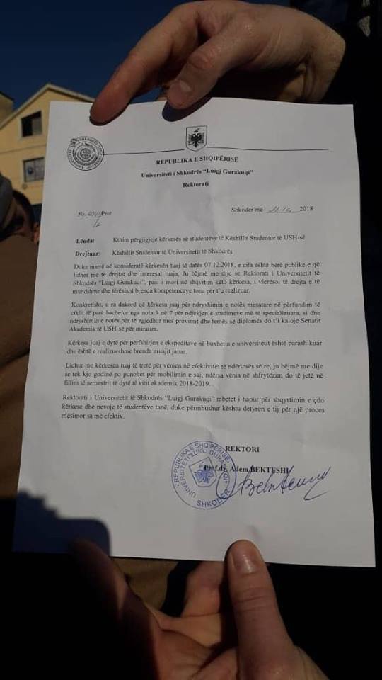 Universiteti i Shkodrës ka plotësuar tre kërkesat kryesore të studentëve të cilët disa ditë më parë i ishin drejtuar Universitetit më një shkresë.
