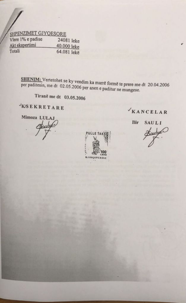 Më vonë, QKK-ja me kryetar aktorin e njohur Xhevdet Ferri, përmes një shkrese kërkon lëshimin e urdhërit të ekzekutimit të vendimit gjyqësor. Sipas kësaj shkrese, Gjykata e Rrethit Tiranë me vendimin e saj nr. 1910, datë 05.04.2006, ka pranuar padinë e ngritur nga QKK-ja dhe ka vendosur që Çipi dhe Budina t’i paguajnë QKK-së shumën e akorduar në masën 8.8 milion lekë, kamatëvonesat në masën 21.2 milion lekë, si dhe përballimin e shpenzimeve gjyqësore në masën 640 mijë lekë.