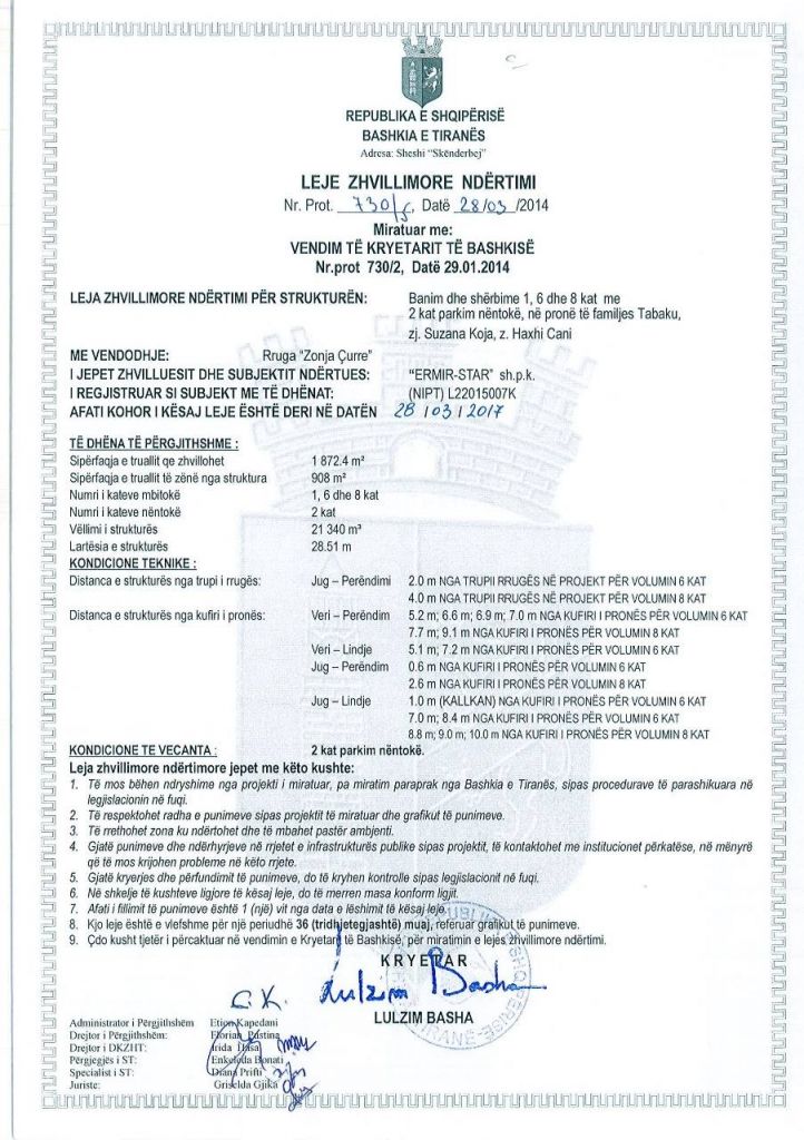 Më konkretisht, Plani i Detajuar Vendor i lejes së ndërtimit që ka marrë Tabaku është bërë në 12 gusht 2013, çka tregon se procedurat për marrjen e lejes kanë nisur kur Tabaku ishte nënkryetare. Por, ndryshe nga shefi i saj, Tabaku ka qenë pak më e rafinuar në këtë drejtim, pasi lejen e ndërtimit nuk ja ka dhënë direkt vetes.