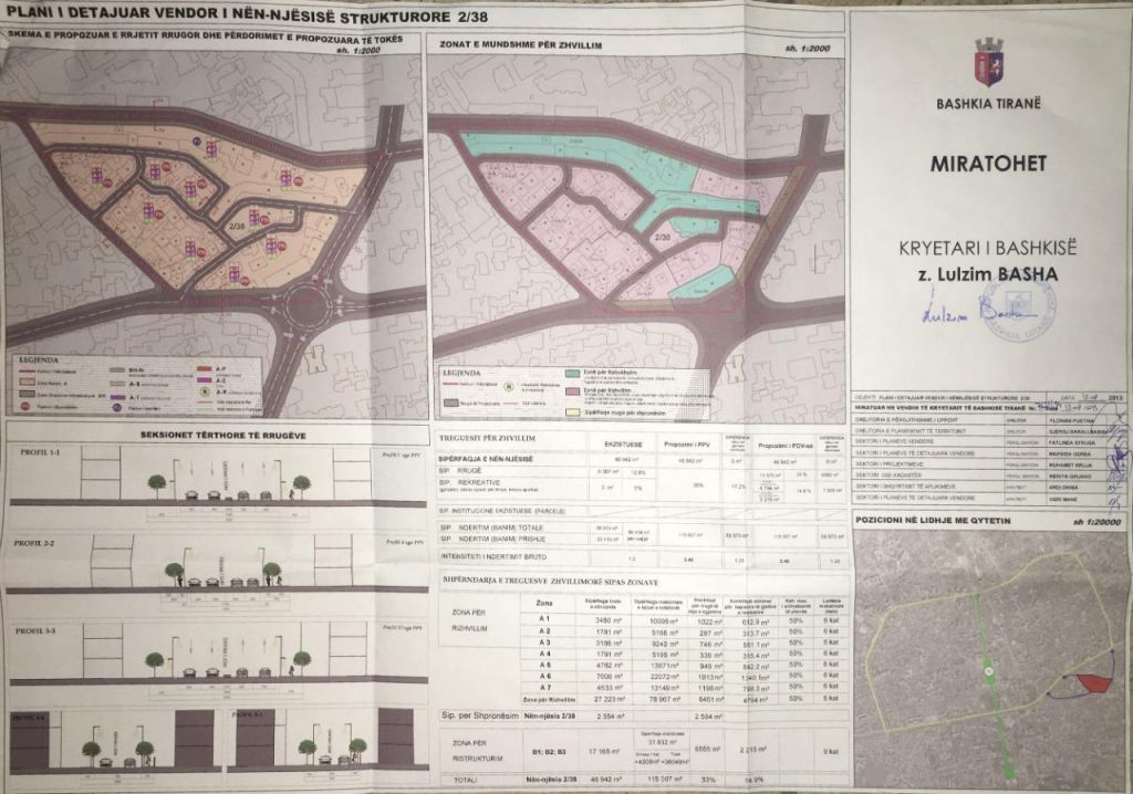 Një muaj para largimit nga Bashkia pasi do bënte betimin si deputete, është miratuar edhe Plani i Detajuar Vendor, që një vit më pas do e shpërblente me ndërtimin e një pallati. Ashtu si edhe në rastin e Bashës, është një praktikë që bie ndesh me ligjin e konfliktit të interesit.