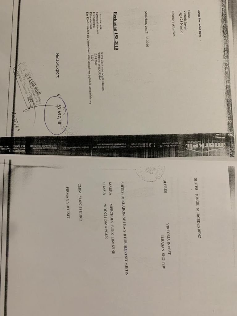 Kjo makinë eshte blere ne Mynih me date 21.06.2010 nga Kompania « Victoria Invest » ndërtuesja elotit të tretë tek Unaza e Re, që ëhsët dhe kumbari i vajzës Lulzim Bashës. Lulzim Basha ka bërë sot disa deklarata të turbullta rreth saj, duke folur për leasing nga kompania « Mektrin », që nuk i ka të reflektuara në dosjen e pasurisë së tij. TemA/a.meta