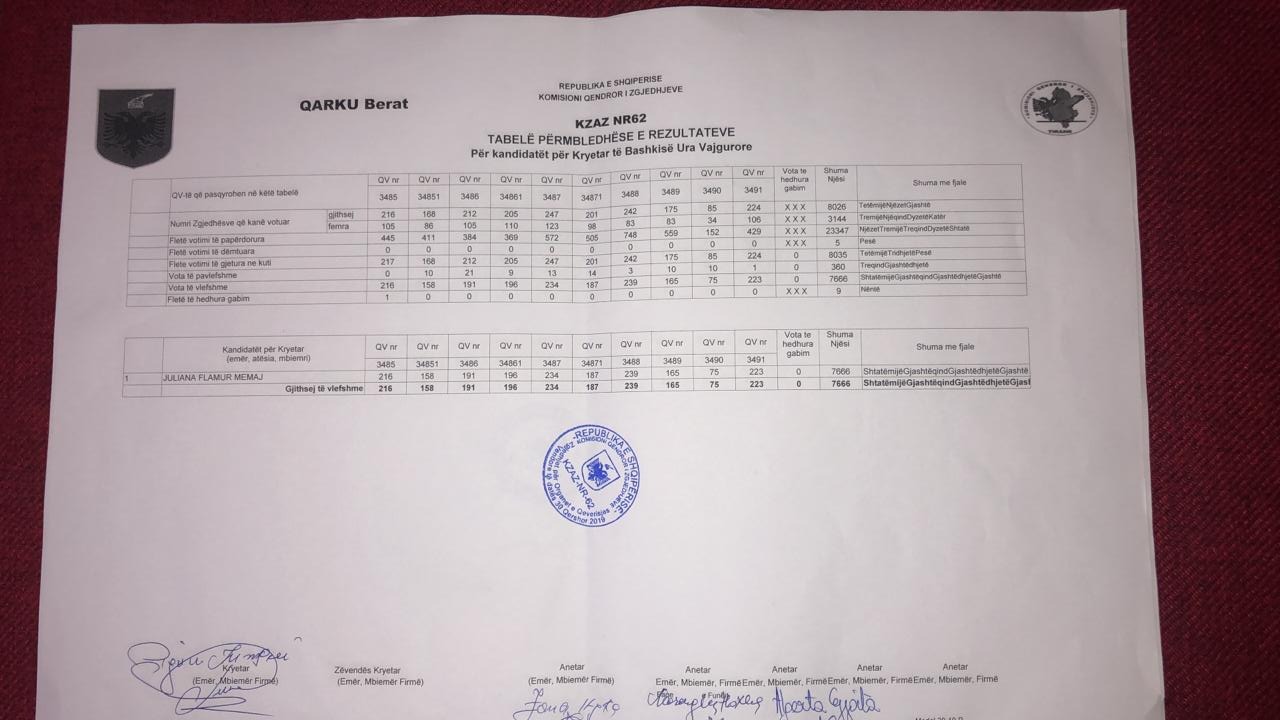 “Sipas dokumenteve të lëshuara nga KZAZ rezulton të jetë një rezultat i saktë. Ajo që di unë është ky dokument. Në asnjë mënyrë nuk është shtuar asnjë votë shtesë. Emri im s’do të përlyhet për asnjë votë më tepër”, tha Juliana Memaj teksa u tregoi gazetarëve procesverbalët e firmosur nga anëtarët e KZAZ-së.