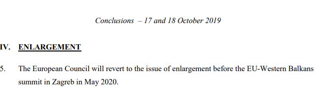 Në dokumentin e publikuar nga Brukse;i raportohet se KE do t’i rikthehet çështjes së zgjerimit përpara samitit BE-Ballkan Perëndimor në Zagreb në maj 2020.