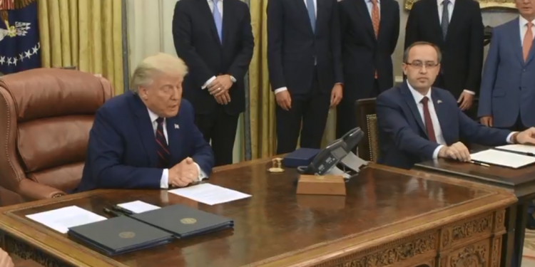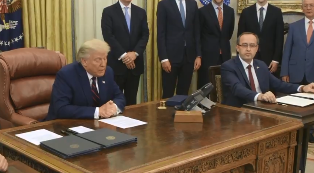 Presidenti i SHBA Donald Trump ka folur nga Shtëpia e Bardhë pas nënshkrimit të marrëveshjes historike për normalizim ekonomik mes Kosovës dhe Serbisë.