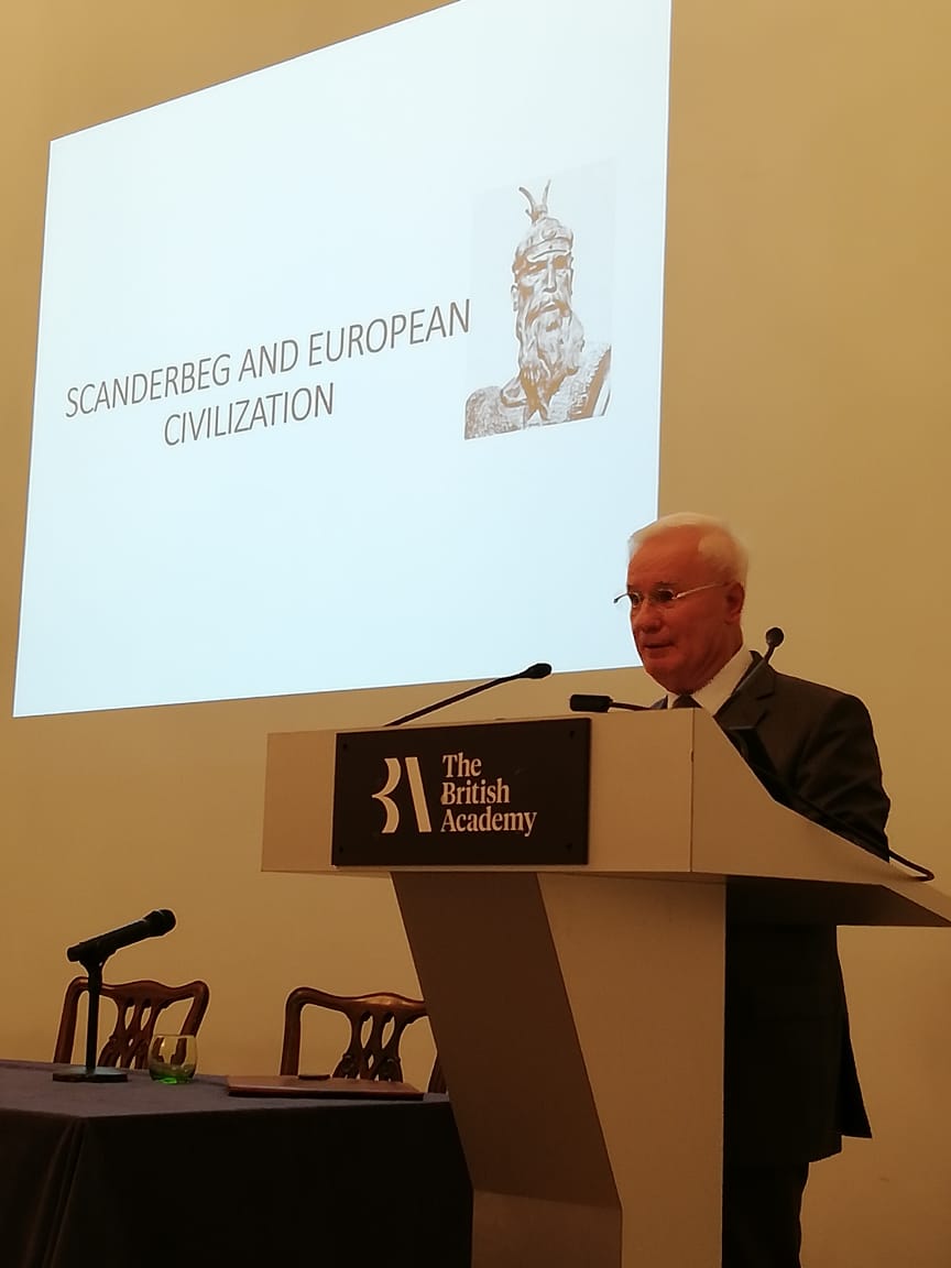 * Ligjëratë mbajtur në ceremoninë organizuar në Akademinë Britanike me rastin e 550 vjetorit të vdekjes së Skënderbeut.